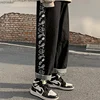 Pantalones vaqueros vintage azules y negros para hombre y mujer, jeans sueltos Y2K, pantalones de Hip Hop, pantalones de monopatín con estampado de costura, lavado, 2021