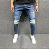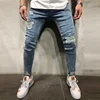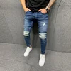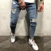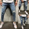 Pantalones vaqueros ajustados para hombre, Jeans elásticos de rejilla rasgados, informales, para Fitness, culturismo, de longitud completa