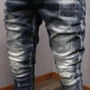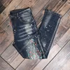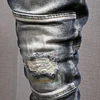 Pantalones vaqueros rasgados y elásticos para hombre, ropa de calle a la moda, de corte ajustado, diseño pintado, Hip Hop, Punk, para motorista