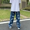 Pantalones vaqueros con costura de estrellas para hombre y mujer, Jeans retro de hip hop de calle alta, pantalones holgados de pierna ancha de arrastre, pantalones de skateboard y2k