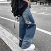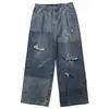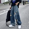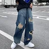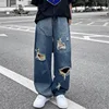 Pantalones vaqueros desgastados de pierna ancha para hombre, jeans rectos desgastados de estilo hip hop, versión coreana de ins