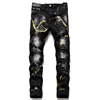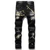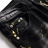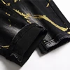 Pantalones vaqueros rasgados con lavado fino para hombre, Jeans elásticos ajustados con salpicaduras de pintura negra, a la moda, otoño e invierno, novedad