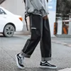 ICCLEK pantalones vaqueros holgados de pierna ancha para hombre, Jeans rectos, Jeans apilados, Jeans rasgados negros de otoño