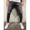 Pantalones vaqueros rasgados para hombre, Jeans ajustados elásticos de gran tamaño, Hip Hop, negros y azules, informales, con cremallera para trotar