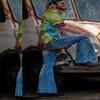 Pantalones vaqueros Acampanados para hombre, Vaqueros Retro bordados de cintura alta, informales, sueltos, con cremallera, largos