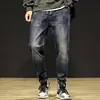Pantalones vaqueros retro holgados para hombre, mallas de primavera, talla grande, bombachos con cintura elástica y cierre ancho