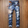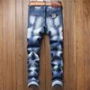Pantalones vaqueros para hombre estilo Punk desgastados, desgastados, rasgados, pintura, marca italiana de moda, 1208