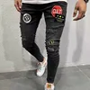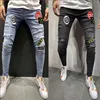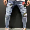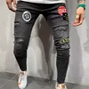 Pantalones vaqueros rasgados con agujeros para hombre, Jeans ajustados elásticos de gran tamaño, Jeans informales de Hip Hop para trotar, color negro y azul