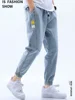 ICCLEK pantalones vaqueros sueltos para hombre, Jeans delgados informales de retales marrones, Jeans ajustados apilados, novedad de otoño 2021