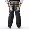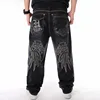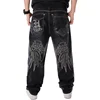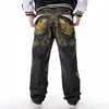 Pantalones vaqueros de estilo Hip Hop para hombre, Jeans bordados a la moda, negros, sueltos, de Rap, talla grande 30 46