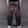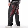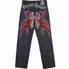 Pantalones vaqueros de rayas para hombre, Jeans sueltos de Hip Hop con estampado de Hiphop, pantalón de tendencia con alas de flores bordadas