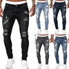 ICCLEK pantalones vaqueros rasgados para hombre, Jeans blancos ajustados de moda, Jeans negros de motorista, Jeans rasgados, novedad de Otoño de 2021