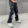 Pantalones vaqueros rasgados con agujeros para hombre, Jeans coreanos de gran tamaño, rectos, negros, Vibe, Harajuku, Retro