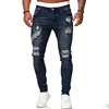 Pantalones de chándal Sexy para hombre, vaqueros con agujeros, informales, rasgados, ajustados, prendas de vestir de motorista, para verano y otoño