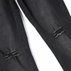 Pantalones vaqueros negros de Color sólido para hombre, Jeans ajustados de cintura elástica, pantalones rasgados elásticos, ropa de calle informal, pantalones de lápiz vaqueros para hombre 2021