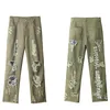 Pantalones vaqueros rasgados con bordado de letras para hombre, ropa de calle estilo Hip Hop, Retro, verde, Punk, 2021