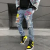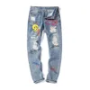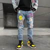 Pantalones vaqueros con estampado de letras Smiley para hombre y mujer, pantalones pitillo rasgados con agujeros, estilo Punk Rock Retro, para baile callejero, Hip Hop
