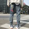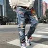Pantalones vaqueros rasgados con estampado de grafiti para hombre, Jeans desgastados con agujeros desgastados, estilo Retro, Hip Hop, baile callejero, 2021