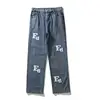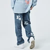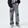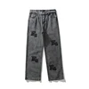 Pantalones vaqueros lavados con bordado de letras para hombre y mujer, ropa de calle de gran tamaño, rectos, Retro, informales, holgados