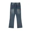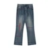 Pantalones vaqueros desgastados con bordado geométrico para hombre, pantalón de estilo Hip Hop, con bordes rugosos, rectos, informales, 2021