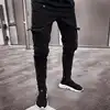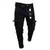 Pantalones vaqueros largos rasgados de motorista para hombre, Jeans elásticos ajustados con múltiples bolsillos, pantalones Cargo elásticos destruidos, pantalones pitillo negros