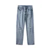 Pantalones vaqueros Retro lavados con estampado de perro para Hombre y mujer, pantalón vaquero ajustado informal con agujeros, estilo Kpop, 2021