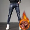 Pantalones ajustados elásticos para hombre, Jeans gruesos y cálidos de felpa para invierno, novedad de 2020