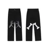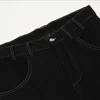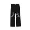 Ropa de calle oscura para hombres, pantalones vaqueros sueltos con bordado de esqueleto Punk, de algodón, negro, recto, para adolescentes, 2021