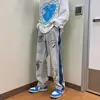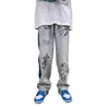 Pantalones vaqueros con estampado de Graffiti para hombre y mujer, Pantalón recto a rayas, ropa de calle Hip hop rasgada, moda 2021