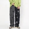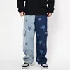 Pantalones vaqueros con estampado de estrellas para hombre, Pantalón recto de gran tamaño, estilo Hip Hop, Vintage, de pierna ancha, 2021