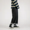 Pantalones rectos holgados para hombre, Jeans informales de Color sólido, con bolsillos Cargo, negro/azul, novedad de 2021