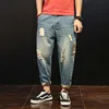 Pantalones vaqueros rasgados para hombre y niño, Jeans sueltos informales con agujeros, tobilleros, talla grande 28 42