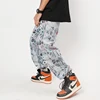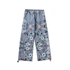Pantalones vaqueros rasgados de pierna ancha para hombre y mujer, ropa de calle recta, holgados, de gran tamaño, con estampado de flores de Color Hip Hop