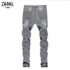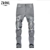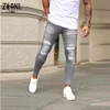 Pantalones vaqueros elásticos rasgados muy ajustados para hombre, ropa de calle Hip Hop, ajustados, de alta calidad, color gris