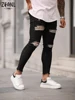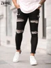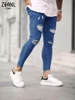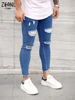 Pantalones vaqueros rotos para hombre, ropa de calle de algodón, de alta calidad, color azul