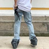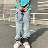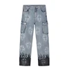 Pantalones vaqueros con estampado de llamas cruzadas para hombre, ropa de calle informal, rasgada, recta, de gran tamaño, con bolsillos, estilo Harajuku