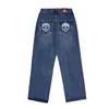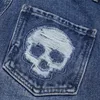 Pantalones vaqueros rasgados Con agujeros para hombre y mujer, Jeans rectos de gran tamaño, estilo Hip Hop, con bordado de calavera cruzada, 2021