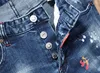 DSQ2 pantalones vaqueros rasgados, Jeans dsq de alta gama con agujeros y pintura al rociar, la mejor calidad