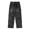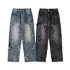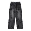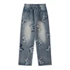 Pantalones vaqueros con bordado de letras para hombre, Jeans rectos de cintura elástica, estilo Hip Hop, Retro, lavados, de gran tamaño, 2021