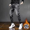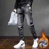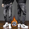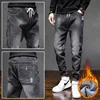 Pantalones vaqueros térmicos para hombre, Jeans gruesos y cálidos de lana, color negro, moda de invierno, 2021