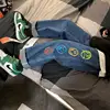 Pantalones vaqueros con estampado de Smiley para hombre y mujer, pantalón vaquero de pierna recta, ropa holgada de tendencia de moda, ropa de calle de gran tamaño