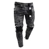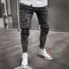 Pantalones vaqueros ajustados para hombre, Jeans rasgados de motorista de alta calidad, bocas de pie para hombre, cremallera para trotar, pantalones de lápiz de mezclilla informales, ropa