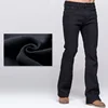 Pantalones vaqueros de corte de bota para hombre, Jeans gruesos y cálidos elásticos negros, pantalones ajustados ligeramente acampanados de lana Polar, Jeans de fondo negro con campana