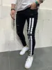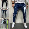 Pantalones vaqueros rasgados para hombre, pitillos con estampado de Letras a rayas, ropa de calle de alta calidad