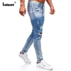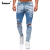 Ladguard pantalones vaqueros rasgados para hombre, pantalón informal con agujeros, estilo europeo y americano, con cremallera empalmada, Sexy, 2022