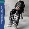 Pantalones vaqueros divertidos abstractos para hombre, ropa de calle de pierna ancha, Hip Hop, con estampado de retales, novedad de 2021