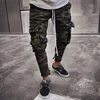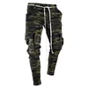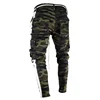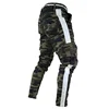 Pantalones vaqueros con estampado de camuflaje a rayas para hombre, Jeans de costura con bolsillo, a la moda de otoño, con cordones y botones, pantalones de lápiz vaqueros de cintura media