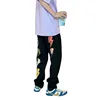 Pantalones vaqueros negros con estampado de Hip Hop para hombre, pantalón largo de pierna ancha, holgado, de tubo recto, estilo coreano personalizado, 2021