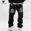 Aolamegs pantalones vaqueros con estampado de letras para hombre, pantalón de estilo Hip Hop, informal, Harajuku