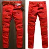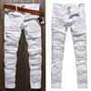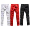Pantalones rasgados elásticos para hombre, Vaqueros rasgados desgastados, ajustados, rasgados y desgastados, negros, blancos y rojos